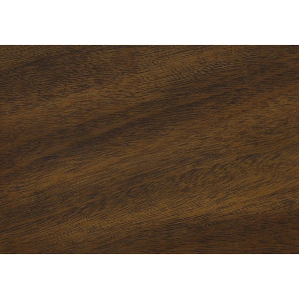 - Finished in a walnut brown veneer in a transitional style, this table features a spacious, square table top ideal for placing a lamp, books, and decorative objects.