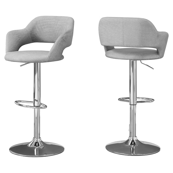 Bar Stool, Swivel, Bar Height, Adjustable, Metal, Fabric, Grey, Chrome, Contemporary, Modern