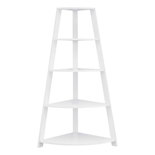 Bookshelf, Bookcase, Etagere, Corner, 4 Tier, 60"H, Office, Bedroom, Laminate, White, Contemporary