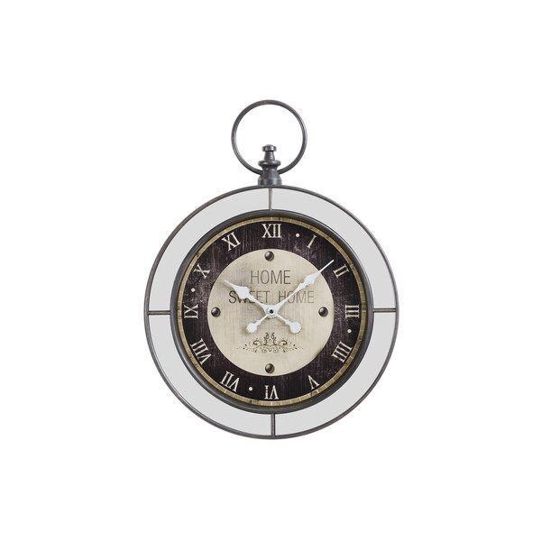 Stay ahead of the trend with this stylish 18" round wall clock with a vintage twist! This stunning retro style clock features a gorgeous mirror frame encased in an outer plastic frame with a rich brown hue, making it the perfect statement piece in your home decor. The easy to read, printed roman numeric display around a charming, stamped print is protected under a quality glass surface. This non-ticking analog clock promises accurate timekeeping with modern quartz movement, trusting that to keep you on time while adding a touch of decorative elegance to your space. This chic clock operates with only 1 AA battery, not included, and no assembly required, simply hang it up and enjoy! For indoor use only.