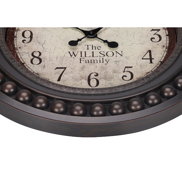 - Fashionable 20" round wall clock in antique brown adds a stylish touch to any home decor.