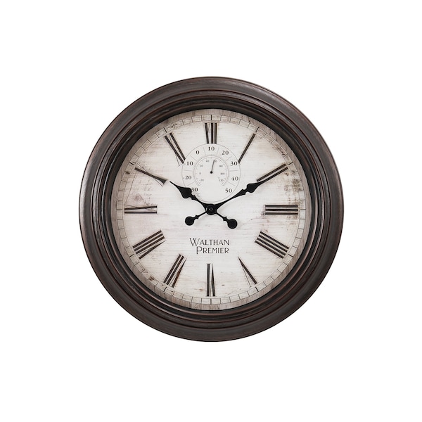 - This stylish and trendy 20" round wall clock in a rich brown color with a subtle rubbed finish and metal hands with a vintage feel, is perfect for adding a decorative touch to any room in your home.