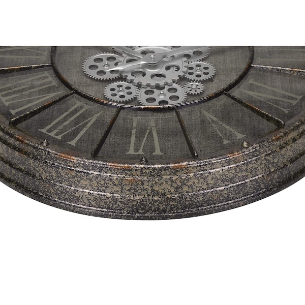 - Sophisticated, vintage, pocket-watch style 24" round wall clock with a moving gear mechanism in rustic grey finish suitable for transitional style decors.