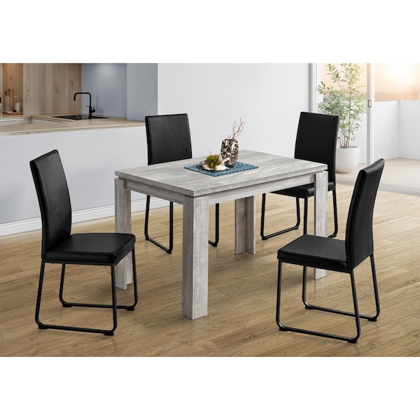 Looking for rustic? Looking for contemporary? How about both? This grey thick-paneled kitchen table features a unique reclaimed wood surface to offer you the perfect farmhouse style for your new place. The modern dining table also features open block shaped legs to keep everything nice and sturdy. When it's time to make a statement in your home, count on this kitchen table to do the job in a casual or formal dining setting. Chairs sold separately.