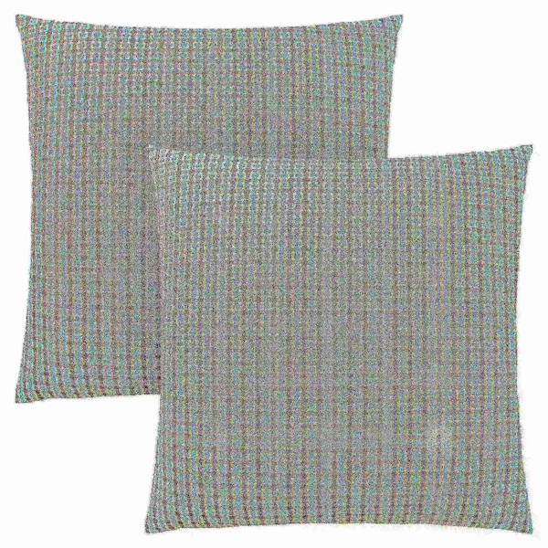Instantly transform the look of a room with this elegant set of 2 square accent pillows in an eyecatching dot design. In a tasteful two-tone light blue and dark grey color, these cushions add a chic update to a chair, sofa, bed, or entryway bench. The woven design on both sides is on a soft polyester fabric and the convenient side zipper allows for easy removal of the poly fill inserts to machine wash the pillow covers. These classic throw pillows will give beautiful texture and dimension to your décor!