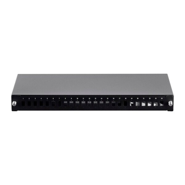 This Monoprice 1U 19" wide premium sliding patch panel features 24 ports. The panel supports SM; DX; SC; LC; and ST adapters directly without the need of an additional adapter panel. The enclosure supports a capacity of 48 fibers. Adapters are sold separately.