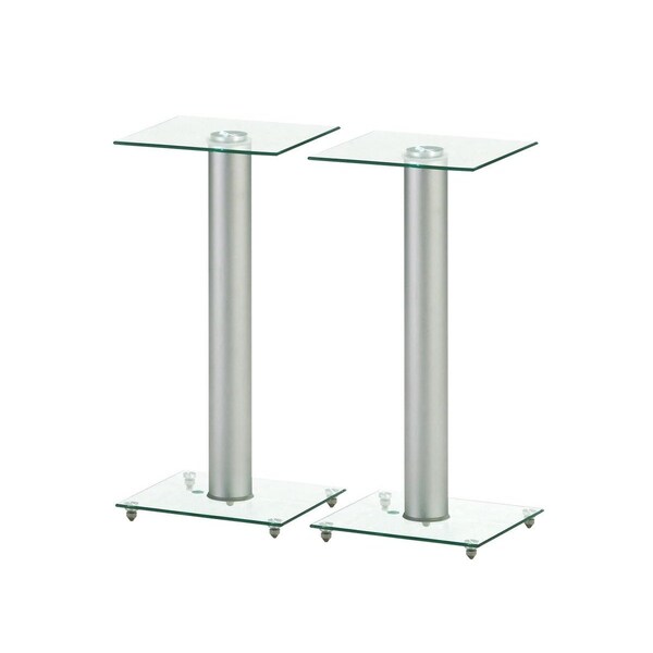 The Monoprice 23" Glass SPeaker Stands combine furniture grade aethetics and blend with any living room or home theater decor. Made of durable aluminum with a silver finish; the stands sleek profiles add a modern touch to your home theater setup. Stealthily conceal the speaker cables out of sight. Simple to set up; these speaker stands make a good addition to any home theater or stereo system. Features: Premium grade appearance; sturdy and durable High Quality tempered glass and glossy aluminum pair of stands Supports up to 22 pounds; 10kg Top glass 8 inches by 8 inches; Bottom glass 10 inches by 10 inches Total height 23 inches Support Files: User's Manual (Nov 25; 2019) Updated Nov 25; 2019