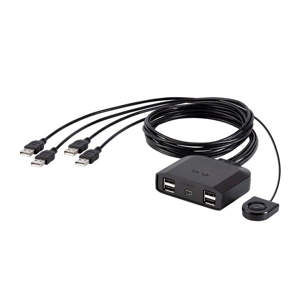 This 4-Port USB 2.0 KVM Switch allows you to use USB keyboard; USB mouse; USB Printer; and USB flash drive with four desktop or laptop computers. Features: 4 built-in USB ports - all-in-one design Allows 4 computers to share 4 USB devices - a USB keyboard; mouse and up to two peripheral devices Simple port selection using the Remote Port Selector USB 2.0 compatible Multiplatform support - Windows®; Mac® OS X®; Linux®; and Sun® LED indicators display port focus Non-powered (supports optional USB power adapter) Support Files: User's Manual (Apr 26; 2019) Quick User Guide (Apr 1; 2019) Microsoft®; Windows®; and Vista® are either registered trademarks or trademarks of Microsoft Corporation in the United States and/or other countries. Mac® is a trademark of Apple Inc.; registered in the U.S. and other countries. Linux® is the registered trademark of Linus Torvalds in the U.S. and other countries. Sun®; the Sun logo; Sun Microsystems® are trademarks or registered trademarks of Sun Microsystems; Inc. in the United States and other countries. Updated Jul 24; 2019