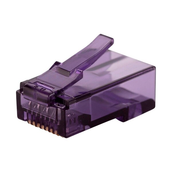 This is a pack of 100 crimp on RJ45 connectors for Cat6 solid cables. Cat6 connectors are made to higher standards; that help reduce noise caused by crosstalk and system noise. These connectors feature inserts for holding the wires in place; gold plated contacts; and a purple plastic housing. Features: Crimp on plug for use with Cat6 solid Ethernet cable Includes insert to hold wires in place Gold plated contacts Purple plastic housing Support Files: Usage Instructions (Mar 27; 2009) Updated Jul 26; 2019