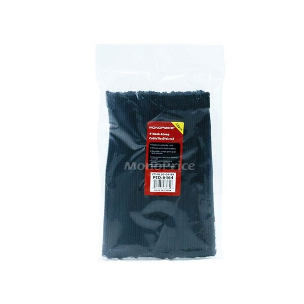 9" L, Black Hook and Loop Fastening Cable Tie, Package quantity: 50 (Discontinued)