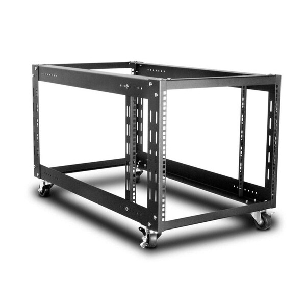 Keep your servers cool and easily accessible with this 9U 900mm Open Frame Rack from Monoprice! This simple server rack is open on all six sides; giving easy access to the servers and allowing for maximum airflow through the chassis. It is constructed of 2.0mm cold rolled SPCC steel and has rack mounting points on both the front and back. Additionally; it has an internal; adjustable rack mounting point. The rack is on lockable casters and can support a total of 440 lbs. (199.6 kg). The rack is compatible with most rackmount chassis and equipment; including HP®; DellTM; and IBM® servers equipped with sliding rails. It has 9U of rack space and can mount equipment up to 35" (88.9cm) deep. The rack comes with M5 mounting screws and cage nuts and is RoHS compliant. Features: 9U form factor 440 lbs. (199.6 kg) weight capacity Constructed of 2.0mm SPCC cold rolled steel Equipped with locking casters for easy mobility Compatible with HP®; DellTM; and IBM® servers with sliding rails 35" (88.9cm) maximum chassis depth Dimensions: 20.0" x 21.5" x 35.4" (508 x 546 x 899 mm) Rackmount points on front and rear of cabinet Adjustable internal rackmount point Open frame design provides easy access from any angle and unobstructed airflow Comes with M5 mounting screws and cage nuts RoHS compliant HP® is a registered trademark of HP Hewlett Packard Group LLC. DellTM is a trademark of Dell; Inc. IBM® is a registered trademark of International Business Machines Corporation.