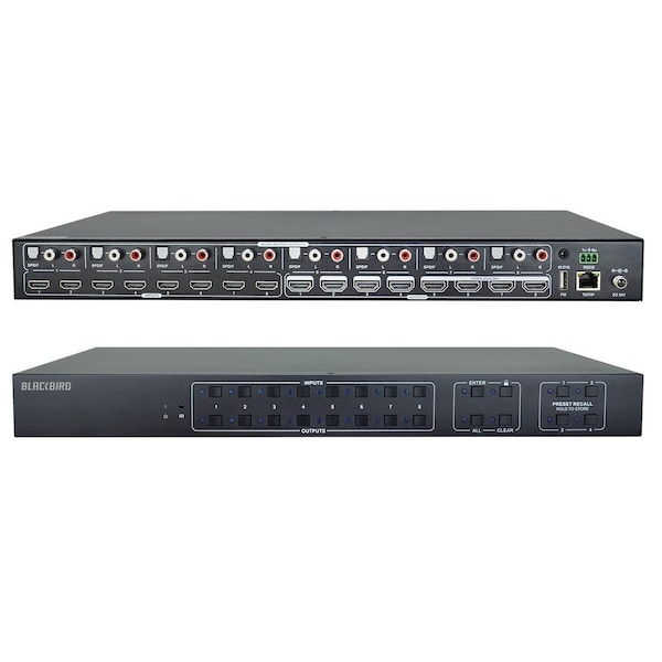 Blackbird 4K 8x8 HDMI Matrix Switch with HDMI 2.0 Supports HDR 18Gbps 4K@60Hz YCbCr 4:4:4 8 S/PDIF Outputs HDCP 2.2 EDID IR RS-232 TCP/IP Web based GUI