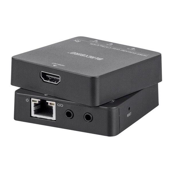 This BlackbirdTM HDMI® Extender transmits 1080p@60Hz signals to distances up to 180 feet (55 meters) over a single Cat6 Ethernet cable. It supports the Power over Cable (PoC) feature; which allows the receiver to be powered by the transmitter over the Ethernet cable. It supports bidirectional IR extension; which allows you to control the source device from the remote location; as well as the remote display from the source location. Features: Extends 1080p@60Hz HDMI® video signals to distances up to 180 feet (55 meters) over a single Cat6 Ethernet cable Supports the Power over Cable (PoC) feature Fully compliant with the HDMI® 1.4 and HDCPTM 1.4 specifications Includes HDMI loop out to allow connection of a display at the source location Supports bidirectional IR extension Features built-in EDID® management for matching the input resolution and audio capabilities of the connected display Support Files: User's Manual (May 16; 2017) BlackbirdTM is a trademark of Monoprice Inc. HDMI®; the HDMI Logo; and High-Definition Multimedia Interface are trademarks or registered trademarks of HDMI Licensing LLC in the United States and other countries. HDCPTM is a trademark of Digital Content Protection LLC. EDID® is a registered trademark of the Video Electronics Standards Association. Updated Aug 12; 2019