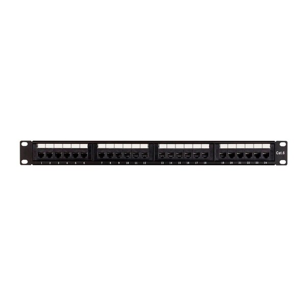 24-port Cat6 UTP patch panel Black painted steel panel Numbered ports White blanks for easy labeling and identification Color coded wiring diagram on back UL® listed 568A/B compatible For 19" wide racks Compliant with ANSI®/TIA/EIA 586 B.2 MonopriceTM and all Monoprice logos are trademarks of Monoprice Inc. UL® and the UL logo are registered trademarks of UL LLC. ANSI®; the ANSI logo; and numerous other identifiers containing "ANSI" are registered trademarks; service marks; and accreditation marks of the American National Standards Institute (ANSI). Updated May 4; 2020
