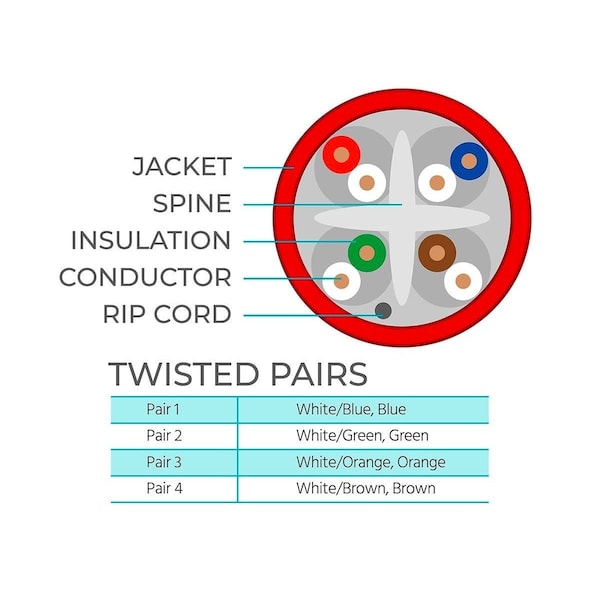 1000FT 23AWG Cat6 500MHz UTP Solid_ Riser Rated (CMR)1000ft - Red