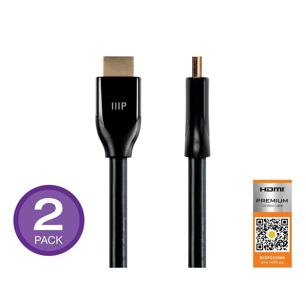 Monoprice's Certified Premium High Speed HDMI® Cable is designed to meet and exceed the highest standards of HDMI performance. Capable of delivering 18Gbps bandwidth; these are the only cables to be tested and certified by HDMI Authorized Test Centers to ensure they support all features in the latest HDMI specification. Guaranteed to work with all modern 4K equipment; the Certified Premium High Speed HDMI Cable is the perfect choice for all your 4K and High Speed HDMI display needs. Premium Certified Comprehensive Testing Dual Video Stream Premium Certified: These Certified Premium High Speed HDMI® Cables are the only HDMI cables to be tested and certified by HDMI Authorized Test Centers to ensure they support all features in the latest HDMI specification. Comprehensive Testing: Each cable length has been individually tested and certified to deliver the full 18Gbps bandwidth with a high level of EMI resistance. Dual Video Stream: This High Speed HDMI Cable supports the simultaneous delivery of dual video streams to a single display screen. This enables use of the Multi View feature found on newer LG® and Samsung® televisions; so you can watch football while the kids play video games on the same display. Lengths: 3; 6; 10; 15; 20; 25; and 30 feet Certified by HDMI® Authorized Test Centers Each individual length of these cables has been tested to ensure that it is capable of delivering the full 6.0Gbps/channel (18Gbps total) bandwidth required by the latest HDMI specification. Once the cable has passed the rigorous testing procedure; HDMI Licensing issues a Premium Certified Cable label; which includes a hologram and 2D barcode; so you can trust that the cable will deliver the highest level of HDMI performance. Supports all HDMI® resolutions up to 4K (3840x2160p @60Hz); including 3D and Multi View video Supports the 21:9 cinema aspect ratio Supports up to 32 audio channels and a 1536 kHz audio sampling rate Simultaneous delivery of dual video streams to multiple users on the same screen Supports SA-CD; DVD-Audio; DTS-HD Master Audio; Dolby TrueHD; and other high-definition audio standards Supports Deep Color; up to 16-bits per channel; including Sony's x.v.Color standard Supports extended CEC (Consumer Electronics Control) commands and functions; the HDMI Ethernet Channel; and the Audio Return Channel features Monoprice Lifetime Warranty on ALL Cables With Monoprice's Lifetime Warranty you can rest assured we stand behind our products and our customers. Quality at a Fair Price Monoprice's rugged design and rigid quality control standards deliver high quality products at fair prices. Service & Support You're never on your own with Monoprice products! We have a full team of friendly and knowledgeable technicians available to answer your questions; both before and after the sale. Contact our technical support team for questions about our products; troubleshooting; or even suggestions for products to fit your particular needs. Not to be outdone; our friendly and helpful customer service team is here to make your ordering; delivery; and any possible returns a quick and painless operation; from start to finish! HDMI®; the HDMI Logo; and High-Definition Multimedia Interface are trademarks or registered trademarks of HDMI Licensing LLC in the United States and other countries. LG® is a registered trademark of LG Electronics Inc. Samsung® is a registered trademark of Samsung Electronics Co.; Ltd. Sony is a registered trademark of Sony Corporation. x.v.Color is a trademark of Sony Corporation. DTS® is a registered trademark and the DTS logos; Symbol; DTS-HD; and DTS-HD Master Audio are trademarks of DTS; Inc. Dolby® and the double-D symbol are registered trademarks of Dolby Laboratories. Dolby TrueHD is a trademark of Dolby Laboratories.