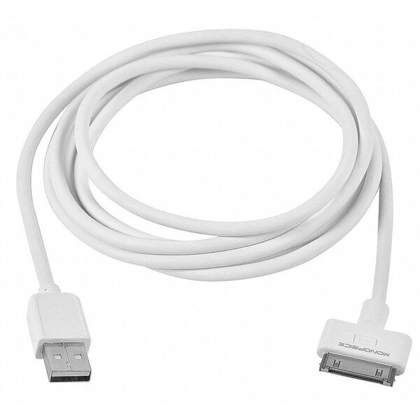 Charger/Sync USB Cable, USB Specification 2.0, 6 ft, Color White, Connector Type A Male, Charges and Syncs Devices, For Use With Apple 30-Pin Devices