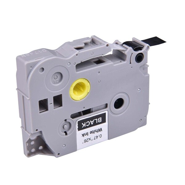 This Monoprice label tape is compatible with Brother P-touch label makers and prints White on Black background. It is 26" inches long and 1/2" wide.
