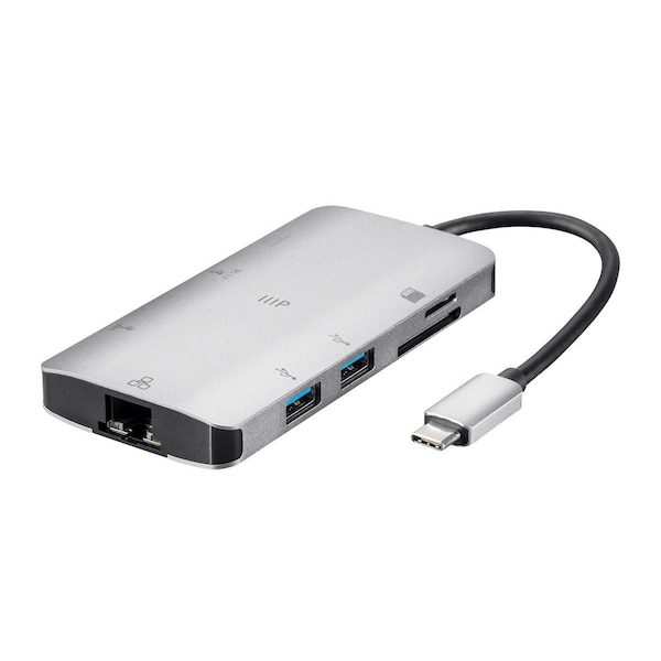 Extend your reach and grasp new possibilities your USB Type-CTM computer with the Monoprice ConsulTM Series of USB-CTM adapters! By unlocking USB-C 3.1 functionality; the Consul Series is able to offer a variety options to expand your ability to work anywhere you need or want. This Consul Series USB-C to HDMI® Adapter allows you to connect an external HDMI display to mirror your laptop's display or expand your system's desktop area; with support for resolutions up to 4K@30Hz. It also features a Gigabit Ethernet port; a USB-C port; USB 3.0 Type-A charge and sync port; two USB 3.0 Type-A data ports; and SDTM and microSDTM UHS-I card slots for advanced data transfer capabilities for your computer's USB-C port. The built-in Gigabit Ethernet adapter allows you to enjoy the superior security and increased speeds of a wired Ethernet connection. USB 3.0 connectivity allows you to charge and sync mobile devices or use external drives and provides data transfer speeds up to 5Gbps through either the USB-A or USB-C ports. The USB-C port supports the Power Delivery (PD) 3.0 standard; delivering up to 100 watts of power to compatible devices. The PD 3.0 standard also ensures that connected devices won't reset or disconnect when power is applied to or removed from the USB-C port. The lightweight and premium aluminum design results in a better built adapter; making it more durable than adapters made of plastic. 4K HDMI® Plug and Play Aluminum Body Compact 4K HDMI®: Connect an external HDMI® display to mirror your laptop's display or expand your system's desktop area; with support for resolutions up to 4K@30Hz. Plug and Play: The USB-A and USB-CTM ports comply with the USB 3.1 Gen 1 standard and can deliver up to 5Gbps of data throughput. Aluminum Body: Featuring a built-in Gigabit Ethernet adapter; you can enjoy the superior security and increased speeds of a wired Ethernet connection. Compact: When connected to a compatible host device; this adapter supports the Power Delivery (PD) 3.0 standard; allowing you connect and disconnect up to 100 watts PD without dropping any data or video connections. The ConsulTM Series Monoprice's ConsulTM Series of USB-CTM adapters is able to offer a variety options to expand your ability to work anywhere you need or want. DATA ADAPTERS Product ID 34181 35504 34178 34179 34180 34182 35507 34185 USB Type‐A Ports 4 4 2 2 3 2 4 - USB Type‐CTM Ports - - 2 2 1 1 1 - Maximum Data Speed 5G 10G 5G 10G 5G 5G 5G - Maximum Ethernet Speed - - - - - - Gigabit Gigabit SDTM/microSDTM Card Slot - - - - - Yes Yes - PD 3.0 Passthrough - - Yes Yes Yes Yes Yes - DISPLAY ADAPTERS Product ID 35503 34187 35505 35506 34184 35510 35509 35508 34183 34186 Video Output DisplayPort® VGA VGA VGA HDMI®/VGA* HDMI/VGA* HDMI HDMI HDMI HDMI USB Type‐A Ports - - 1 1 2 2 3 1 1 - USB Type‐CTM Ports - - 1 1 1 1 1 1 1 - Maximum Data Speed - - 5G 5G 5G 5G 5G 5G 5G - Maximum Ethernet Speed - - - Gigabit Gigabit Gigabit Gigabit Gigabit - - SDTM/microSDTM Card Slot - - - - - Yes Yes Yes - - PD 3.0 Passthrough - - Yes Yes Yes Yes Yes Yes Yes - *Supports only a single display at a time. ConsulTM is a trademark of Monoprice Inc. USB Type-CTM and USB-CTM are trademarks of USB Implementers Forum; Inc. HDMI®; the HDMI Logo; and High-Definition Multimedia Interface are trademarks or registered trademarks of HDMI Licensing LLC in the United States and other countries. SDTM and microSDTM are trademarks of SD-3C; LLC. DisplayPort® and the DisplayPort® logo are registered trademarks of the Video Electronics Standards Association.