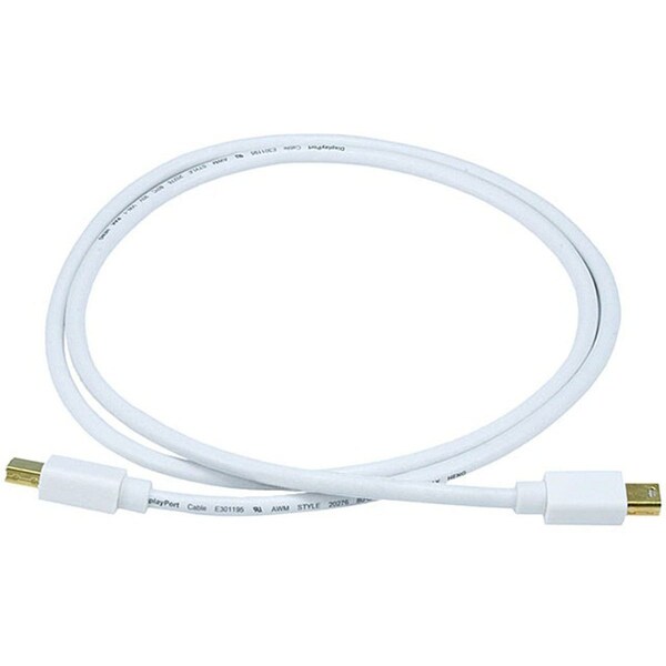 Computer Video Cable, Mini DisplayPort Male to Male, Cable Length 3 ft, Gauge 32 AWG, Color White, Standards UL