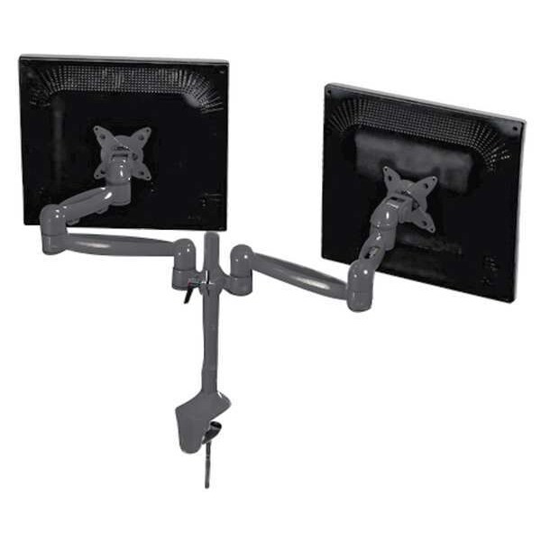 Dual Monitor Arm, Clamp Mount, Material Aluminum, Color Black, Monitor Capacity 2, Weight Capacity 18 lb, Length 8 in, Width 17 in, Height 10 in, For Use On Desk, Includes Hardware