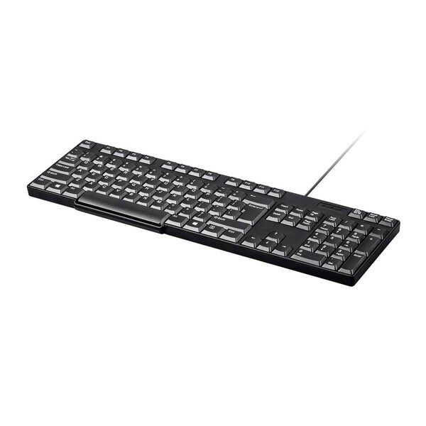 This simple; attractive; and high-quality keyboard perfectly complements your modern workspace with ideally spaced key layout; quiet and comfortable key switch action; and reliable operation for years to come. Its slim; stylish profile; without obtrusive logo badging; matches any desktop or laptop with clearly labeled keys positioned perfectly for fast; accurate typing. Reliable USB plug-and-play wired connectivity; full-sized function keys with 10-key number pad; and indicator lights make this budget-friendly keyboard an easy choice when you need a keyboard. Comfortable Key Action Ideal Key Layout Simple Wired Operation Comfortable Key Action: Great-feeling key switches with positive feedback; yet minimal force; for fast; accurate typing and reduced fatigue. Ideal Key Layout: Perfectly spaced keys with familiar standard layout; including full complement of function keys and 10-key number pad. Simple Wired Operation: Simply plug it into an available USB port to start typing right away; without the need for drivers or anything else. Stylish | Compact | Functional Form Factor Warranty Monoprice not only stands behind every product we sell with a 1 year replacement warranty; we offer a 30-day money back guarantee as well! If the product you purchase does not satisfy your needs; send it back for a full refund. Quality at a Fair Price Monoprice's rugged design and rigid quality control standards deliver high quality products at fair prices. Hassle Free Packaging Monoprice exists to bring simplicity; fairness; and confidence to technology choices. This product features recyclable packaging that is simple to open; cost effective; with minimal waste; and fully protective as it travels to you. Service & Support You're never on your own with Monoprice products! We have a full team of friendly and knowledgeable technicians available to answer your questions; both before and after the sale. Contact our technical support team for questions about our products; troubleshooting; or even suggestions for products to fit your particular needs. Not to be outdone; our friendly and helpful customer service team is here to make your ordering; delivery; and any possible returns a quick and painless operation; from start to finish!