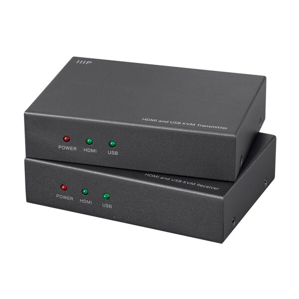 The Monoprice HDMI® and USB KVM Extender can extend high definition HDMI and USB signals up to 154 feet (50 meters) over a single Cat5e/6 cable with zero latency. Supporting HDMI 1.4b and USB 2.0 standards; this kit features two-way POC (Power over Cable) enabling either the transmitter or receiver to be powered by a single 12V@1A power supply. Ideal for use in classrooms; home theater PC applications; or for controlling servers in remote parts of a home or office; this KVM extender makes remote control easy and affordable. Features: Control servers or home theater PCs from a remote location within the same building or home The USB HDMI® KVM Extender lets you control a PC from up to 164ft (50m) away over a single Cat5e or Cat6 cable connection Extends uncompressed 1080p HDMI video and access to up to two connected USB devices with zero latency Support Files: User's Manual (Jul 20; 2018) HDMI®; the HDMI Logo; and High-Definition Multimedia Interface are trademarks or registered trademarks of HDMI Licensing LLC in the United States and other countries. DTS®; the Symbol; and DTS and the Symbol together are registered trademarks of DTS; Inc. DTS-HDTM and DTS-HD Master AudioTM are trademarks of DTS; Inc. Dolby®; Dolby® TrueHDTM; Dolby AudioTM; and the double-D symbol are trademarks of Dolby Laboratories. HDCPTM is a trademark of Digital Content Protection LLC. Updated Aug 28; 2019