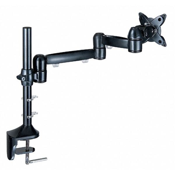 Monitor Arm, Clamp Mount, Material Aluminum Alloy, Color Black, Monitor Capacity 1, Weight Capacity 18 lb, Length 5 in, Width 16 in, Height 13 in, For Use On Desk, Includes Hardware