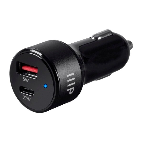 The Monoprice 27W Car Charger allows you to charge your power hungry USB-powered devices in less time; giving you more time to use them. The dual ports make it possible to charge both a USB-C® device and a USB Type-A device at the same time; giving you maximum flexibility. The USB-C port outputs up to 27 watts of power; allowing you to charge your laptop; while the USB Type-A port separately outputs up to 5 watts of charging power. 27W Power Delivery Dual Ports Reversible Design 27W Power Delivery: This charger delivers 27 watts of power; allowing it to charge or power even the most power hungry USB-C® equipped smartphones; tablets; and computers in less time; giving you more time to use them. Dual Ports: Featuring both USB-C and USB Type-A charging ports; this charger has the flexibility to charge almost any mobile device. Reversible Design: The reversible Type-C® port is always properly oriented; eliminating a common source of frustration from trying to plug in improperly oriented Type-A connectors. Power Packed This 2-port charger delivers enough power to charge smartphones; tablets; computers; gamingdevices and more; all packed into a ø1.2" x 2.7" form factor. Buy with Confidence Monoprice not only stands behind every product we sell with a 1 year replacement warranty; we offer a 30-day money back guarantee as well! If the product you purchase does not satisfy your needs; send it back for a full refund. Quality at a Fair Price Monoprice's rugged design and rigid quality control standards deliver high quality products at fair prices. Hassle Free Packaging Monoprice exists to bring simplicity; fairness; and confidence to technology choices. This product features recyclable packaging that is simple to open; cost effective; with minimal waste; and fully protective as it travels to you. Service & Support You're never on your own with Monoprice products! We have a full team of friendly and knowledgeable technicians available to answer your questions; both before and after the sale. Contact our technical support team for questions about our products; troubleshooting; or even suggestions for products to fit your particular needs. Not to be outdone; our friendly and helpful customer service team is here to make your ordering; delivery; and any possible returns a quick and painless operation; from start to finish! ObsidianTM is a trademark of Monoprice Inc. USB Type-C® and USB-C® are registered trademarks of USB Implementers Forum; Inc. iPhone® is a trademark of Apple Inc.; registered in the U.S. and other countries. AndroidTM is a trademark of Google LLC. Samsung® and Galaxy S® are both registered trademarks of Samsung Electronics Co.; Ltd. Updated Mar 12; 2020