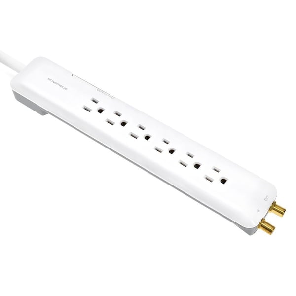 Outlet Strip, Surge, Coax, 5-15R, 5-15P, 4 ft, White