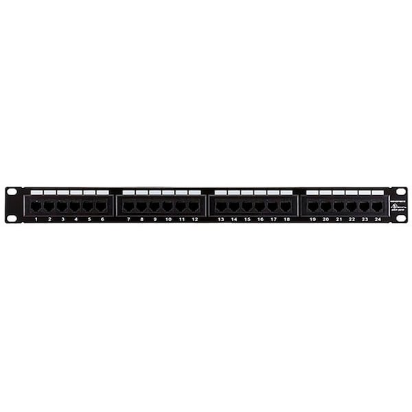 Patch Panel, Compatible Cable Performance Category 5e, Includes White Labels, Material Steel, Number of Ports 24, Panel Shape Straight, Panel Type 2U, Rack Units 2, Manufacturer Warranty Length 1 yr, Overall Depth 19 in, Overall Height 1 3/8 in, Standards UL Listed, T568 Standard T568A, T568B