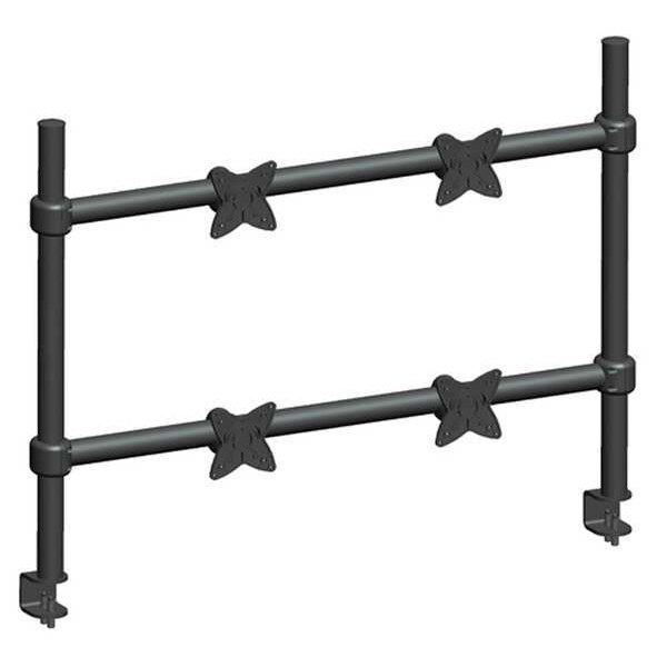 Quad Monitor Arm, Clamp Mount, Material Steel, Color Black, Monitor Capacity 4, Weight Capacity 33 lb, Length 5 in, Width 39 in, Height 29 1/2 in, Features Fits Monitors 75X75 and 100X100 Mounting Patterns, Tilts +/- 30 Degrees , For Use On Desk, Includes Hardware