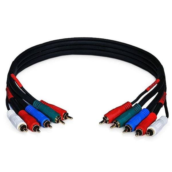 RCA Audio/Video Cable, Cable Color Black, Overall Length 1.5 ft, Coaxial Cable Type RG-59/U, Conductor Gauge 22 AWG, For Use With Video Equipment, Jacket Material PVC, End 2 Number of Connections 5, Maximum Impedance 75 ohm, End 1 Number of Connections 5, Shielded Shielded, Shielding Material Aluminum Foil, Total Number of Cables 5, End 1 Connection Type RCA Male, End 2 Connection Type RCA Male, Conductor Material Copper, End 1 Connection Finish Gold-Plated, End 2 Connection Finish Gold-Plated