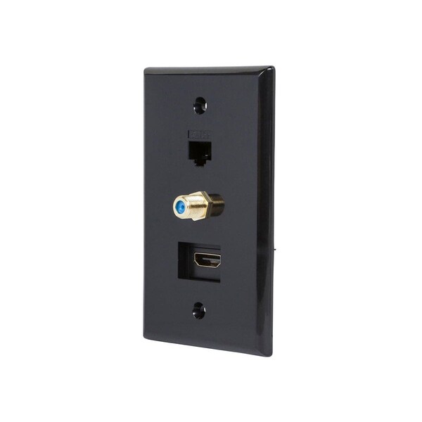 Recessed HDMI Wall Plate_ with 1* HDMI F/F Adapter_ 1*RJ45 Cat5e Coupler & 1* F Connector_ Gold Plated BLACK