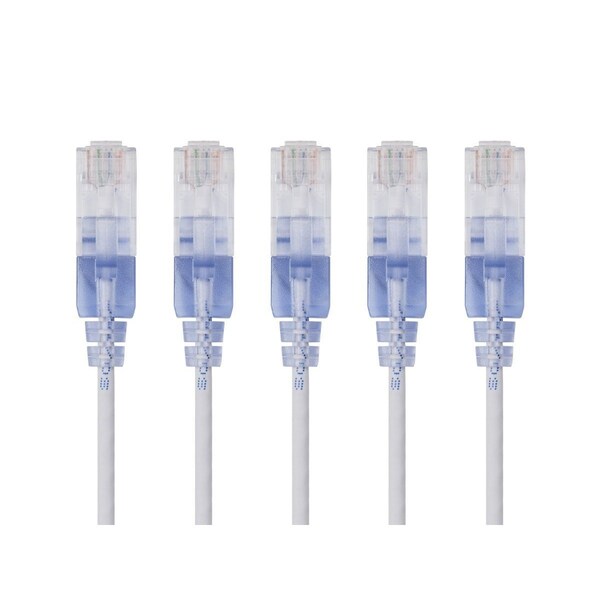 Slim Cat6A Cable,5 Pack,3 ft.White