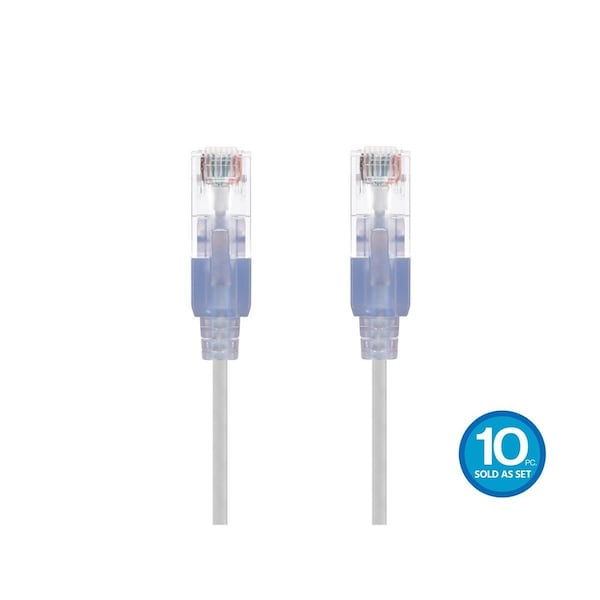 Slim Cat6A Cable,PK10,3 ft.White