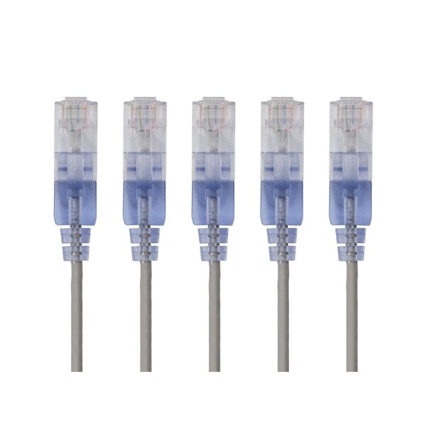 Slim Cat6A Patch Cable,5 Pack,14 ft.Gray