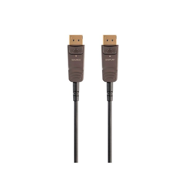 The SlimRunTM AV DisplayPort® Cable is an ideal cable for connecting a high-resolution DisplayPort source to a high-resolution display. It fully supports the DisplayPort 1.3 specification; which provides for up to 32.4 Gbps bandwidth; as well as some of the features from the DisplayPort 1.4 specification; such as High Dynamic Range (HDR) video. It supports video resolutions up to 4K@120Hz; 5K@60Hz; and 8K@30Hz with 24-bit RGB color. It is backwards compatible with all previous DisplayPort versions and requires no external power source. DisplayPort 1.3 Compliant 8K Capable Transmits up to 150ft Thinner and Softer DisplayPort 1.3 Compliant: This cable is compliant with the DisplayPort® 1.3 specification; which provides for up to 32.4 Gbps bandwidth. It is backwards compatible with all previous DisplayPort versions.8K Capable: This cable supports video resolutions up to 8K@30Hz; including 5K@60Hz and 4K@120Hz with 24-bit RGB color.Transmits up to 150ft: SlimRunTM AV DisplayPort® Cables can perfectly transmit 8K@30Hz video to distances up to 150 feet using optical fiber to replace copper conductors as the high-speed signal transmission medium; without the need for extenders or external power.Thinner and Softer: SlimRunTM DisplayPort® Cable is thinner and softer than traditional glass fiber optic cables. Flexible polymer optical cable has a tighter bend radius and is much more resilient to damage and abuse than traditional fiber optic cables made of glass.Next Generation TechnologyThese cables can deliver up to 8.1Gbps of data to each of the three lanes. While other solutions require multiple sets of wires; cables; transmitters; receivers; and screws to mount boxes; SlimRunTM AV DisplayPort® combines the benefits of traditional extension solutions in a single; fiber optic cable.Lengths:20; 30; 40; 50; 75; 100; and 150 feet Features Supports both Single Stream Transport (SST) and Multi-Stream Transport (MST) modesCompatible with AMD® FreeSyncTM 2.0 technologySupports Dolby VisionTM video technologySupports High Dynamic Range (HDR) videoActive cable is compatible with passive video adaptersCompliant with the HDMI® 2.0 and DVITM specificationsSupports video resolutions up to 8K@30Hz; including 5K@60Hz and 4K@120HzSupports DisplayPort Dual-Mode (DP++)ApplicationsBuy with Confidence With Monoprice's Lifetime Warranty; you can rest assured we stand behind our products and our customers. Additionally; we offer a 30-day money back guarantee as well! If the product you purchase does not satisfy your needs; send it back for a full refund.Quality at a Fair Price Monoprice's rugged design and rigid quality control standards deliver high quality products at fair prices.Hassle Free Packaging MonopriceTM exists to bring simplicity; fairness; and confidence to technology choices. This product features recyclable packaging that is simple to open; cost effective; with minimal waste; and fully protective as it travels to you.Service & Support You're never on your own