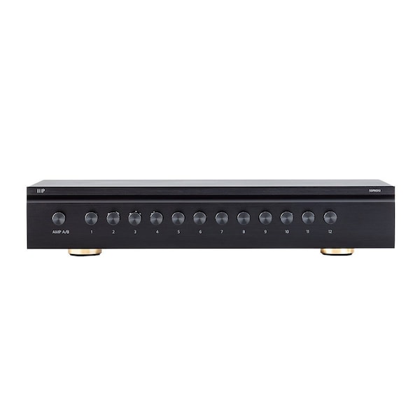 The Monoprice SS-Pro 12 is a powerful and efficient dual source; audiophile grade speaker selector for up to 12 pairs of speakers. Featuring robust transformers; the SS-Pro 12 allows you to play all 12 pairs of speakers at once without damaging the amplifier; and is able to withstand up to 300 watts peak of power per channel. A front panel A/B switch allows you to choose between two amplifier sources; and easily removeable snap in connectors make installation easy. A rotary switch located on the rear panel can be used to set the appropriate impedance based on the number of pair of speakers connected. 12-zone speaker selector that allows you to connect up to 12 pairs of speakers or 12 listening zones and control each zone with front panel push-buttons Utilizes audiophile-grade impedance-matching transformers to safely distribute maximum power throughout your system Easy to use front panel switch to choose between sources Designed for use with either 4 ohm or 8 ohm speakers Protection circuit ensures your amplifier is protected