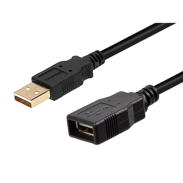Extension USB Cable, USB Specification 2.0, 3 ft, Color Black, Connector Type A Male to A Female, Gold Plated, For Use With PC/MAC Apple(R) Lightning(R), CSA, MAC, UL Standards