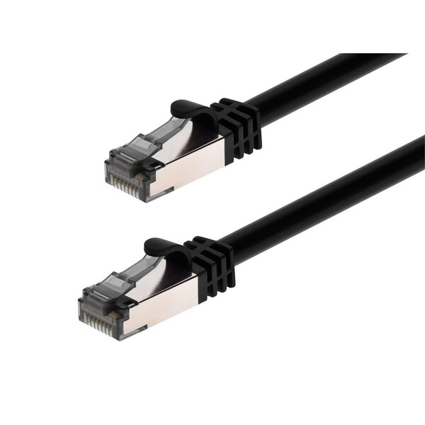 Voice and Data Patch Cord, Cable Shape Round, Conductor Gauge 26 AWG, Jacket Color Black, Overall Length 14 ft, Performance Category 8, Shielded Shielded, Fire Rating Commercial, Jacket Material PVC, Standards NEC TIA-568.2-D, UL Code 444, Transmission Speed 40 GBps, NEC Article and Type Not Rated, End 1 Boot Type Snagless, End 2 Boot Type Snagless, End 2 Connection Type RJ45, End 1 Connection Type RJ45, Cable Diameter 6 mm, Insulation Material HDPE, Maximum Frequency 2 GHz