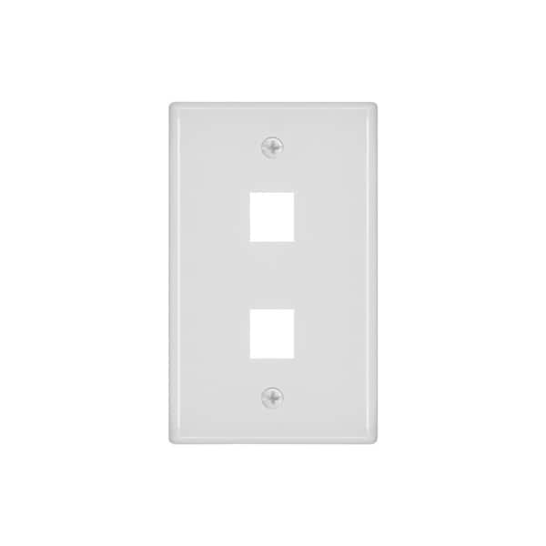 Wall Plate, Product Type Wall Plate, Wallplate Type Telephone, Color White, NEMA Enclosure Rating Not Rated, Compatible Connector Type RJ45, Number of Gangs 1, Outlet Orientation Horizontal, Number of Ports 2, Compatible Cable Performance Category Not Applicable, Material Plastic