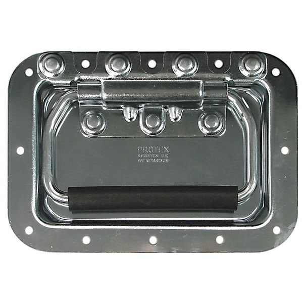 Folding Pull Handle, Load Rated (Y/N) Y, Mounting Type Unthreaded Holes, Material Steel, Finish Zinc Plated, Mounting Hole Center to Center 7.13 in, Vert. Mounting Hole Ctr. to Ctr. 5 in, Grip Dia. 51/64 in, Grip Thickness Not Applicable, Screw Size #10, Overall Length 7.13 in, Overall Width 5 in, Load Capacity 495 lb, Operating Temp. -4 Degrees to 140 Degrees F, Color Silver, Degree Offset Not Applicable, Hardware Not Included, Standards AS9100D, ISO 9001:2015