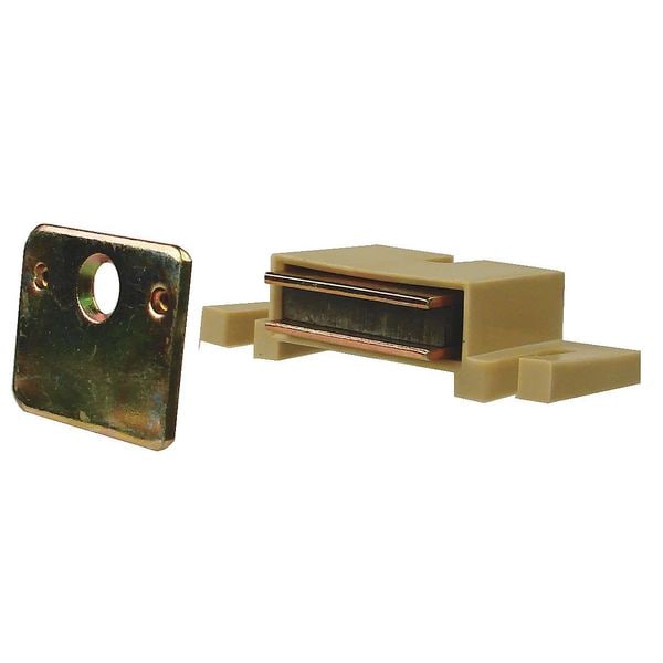 Door Catch, Magnetic, Pull, Adjustable No, Non-locking, Catch/Latch Material Plastic/Steel, Catch/Latch Finish Tan Plastic, Catch/Latch Height 2 1/8 in, Catch/Latch Width 27/32 in, Catch/Latch Depth 2 1/8 in, Pull Force 15 lb, Hole Prep Center Lines Not Applicable