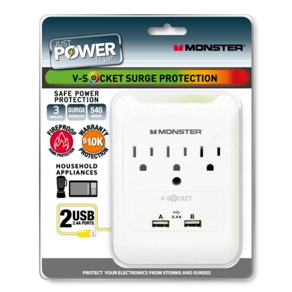 Monster Just Power It Up 3 outlets Surge Tap in Wh