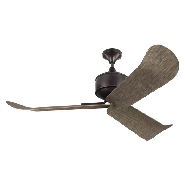 The 56 Dylan by Monte Carlo is a refined interpretation of a vintage industrial ceiling fan ideal for outdoor living spaces from traditional to rustic modern. The unusually upward curved blades finished in on-trend Grey Weathered Oak or Dark Walnut color overlap in the center to create an eye-catching design detail when viewed from below. The vintage look of the ceiling fan is reinforced with the warm Aged Brass and Aged Pewter housing finishes. A hand-held remote with three speeds and reverse is included. The Dylan is wet rated for outdoor use."