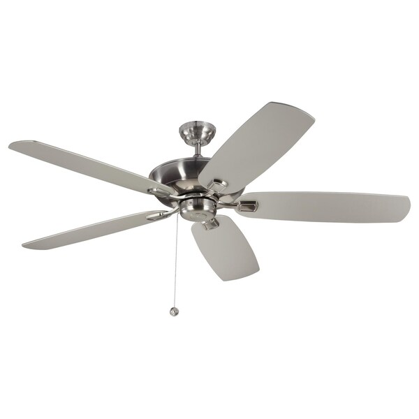 The Monte Carlo 60In. Colony Super Max - Brushed Steel In Brushed Steel Features A 188.0 X 20.0 3 Speed Motor With A Twelve Degree Blade Pitch. The Colony Super Max Ceiling Fan By Monte Carlo Provides Maximum Airflow With A Smooth, Tailored Look. With Three Color Options, Two Of Which With Reversible Dual Finish Blades, And A Dual Mount Canopy Included, It Can Complement A Wide Variety Of Room Décor And Sizes. The Colony Super Max Is Rated For Damp Locations And Has An Optional Remote Control.