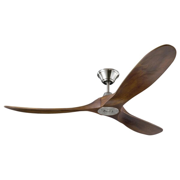 The Monte Carlo 60In. Maverick - Brushed Steel In Brushed Steel Features A 85.0 X 65.0 6 Speed Motor With A Thirteen Degree Blade Pitch. With A Sleek Modern Silhouette, A Dc Motor And Super Energy-Efficiency, The Maverick Ceiling Fan From Monte Carlo Features Softly Rounded Blades And Elegantly Simple Housing. Maverick Has A 60-Degree Blade Sweep And A 3-Blade Design That Delivers A Distinct Profile. Maverick Includes A Hand-Held Remote, And Is Available With Either A Brushed Steel Or Matte Black Housing Finish. Both Versions Include Dark Walnut, Hand-Carved, Balsa Wood Blades. Maverick Fans Are Damp-Rated, And May Be Used Indoors And In Covered Outdoor Spaces.