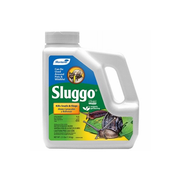 2.5 LB Sluggo Slug & Snail Killer Contains Iron Phosphate & Is Used Around Pets & Wildlife Can Be Used In Vegetable Gardens Up Until Harvest & Ornamentals Organic Products That Breaks Down Into Fertilizer Safe To Use Around Pets & Wildlife.