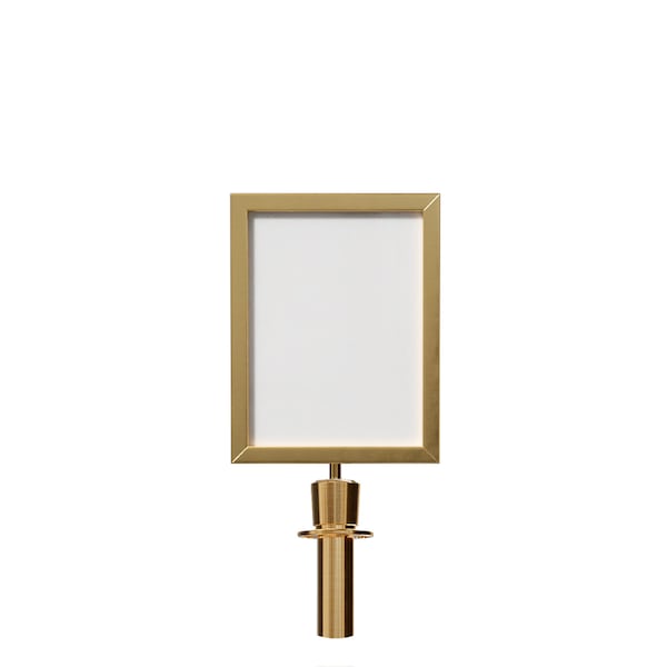 These convenient sign frames fit on top of any standard classic post and rope stanchion, allowing your existing stanchions to serve a double purpose as floor signs and increase your in-store messaging without taking up extra floor space. The attractive frame comes in a variety of sizes, finishes, and orientations to match your existing stanchion. Use these for directional or promotional messaging to avoid customer confusion, increase sales, or improve the foot traffic within your store or small business.